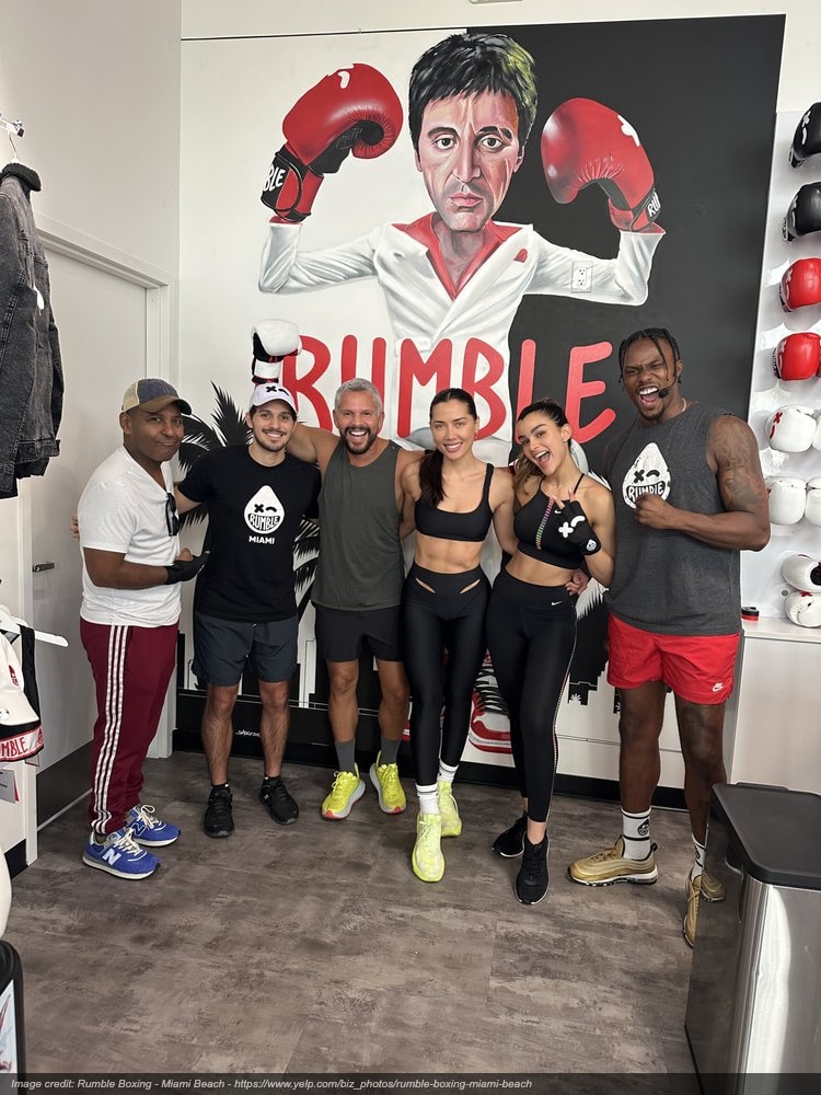 Rumble Boxing is in Hollywood and many other places. Rumble Boxing in Hollywood is a cool place to work out. It has a trendy atmosphere that lots of fitness fans and famous people like.